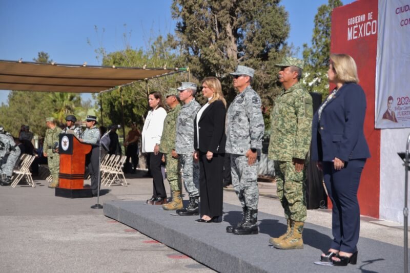 Además de la titular del Ejecutivo, también asistieron al evento las presidentas del Tribunal Superior de Justicia y del Congreso del Estado, los comisarios de las zonas militares 42ª y 5ª, y el titular de la Unidad de Órganos Especializados por competencia de la Guardia Nacional.