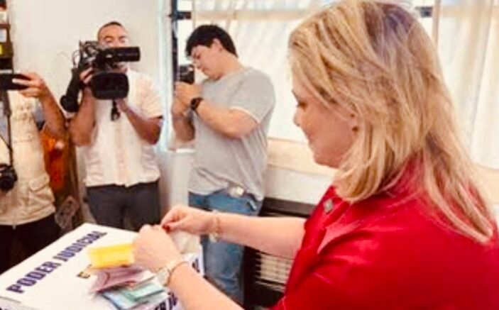 La gobernadora del Estado, Maru Campos, acudió a votar en este Proceso Electoral, quien desde temprano llegó a su casilla.