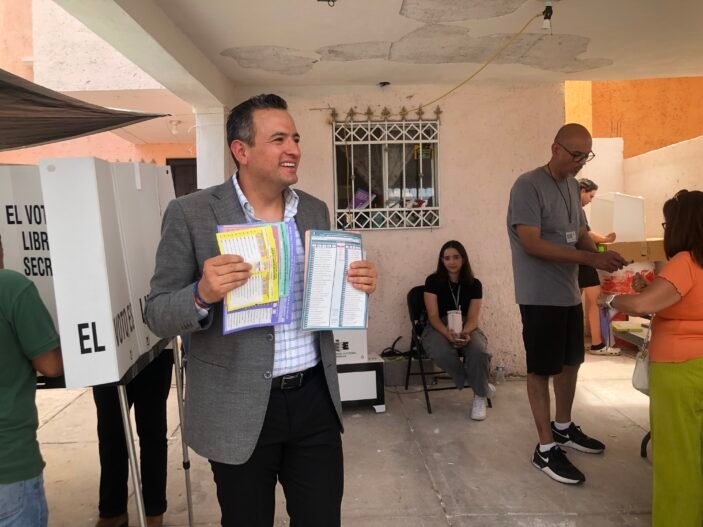 A más de una hora del tiempo que se dijo que votaría el alcalde, Marco Bonilla, finalmente llegó a su casilla al Norte de la ciudad, donde lo esperaban funcionarios municipales y medios de comunicación.