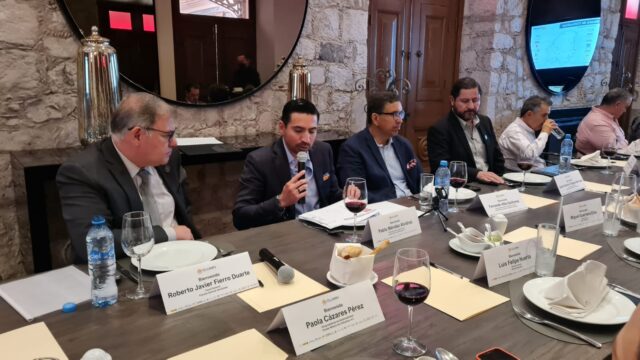 El presidente del Clúster Minero, Pablo Méndez Alvídrez, y el fiscal General del Estado, Roberto Fierro Duarte encabezaron la reunión en la que también se contó con la presencia de los titulares de la Zona Occidente, Edgar Chaparro Venzor y de la Zona Sur, Juan Antonio Olague Barraza, entre otras autoridades involucradas en brindar seguridad en diferentes municipios.