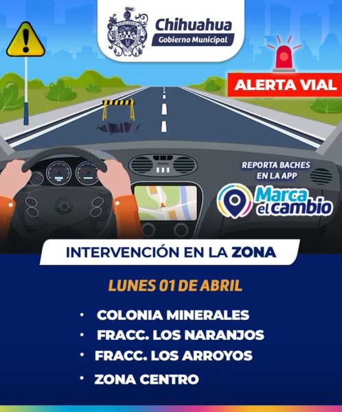 El Gobierno Municipal a través de la Dirección de Obras Públicas, emite alerta vial por la intervención de calles en la colonia Minerales, en los fraccionamientos Los Naranjos, Los Arroyos y en Zona Centro.