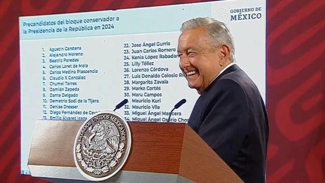 Pues vamos a dar a conocer porque son los que han expresado que quieren, han aparecido en encuestas, o los han propuesto, para que vean cuántos hay del bloque conservador, dije que 38, pero salieron 42, de una vez vamos a destaparlos”, dijo el mandatario federal en conferencia de prensa desde Palacio Nacional.