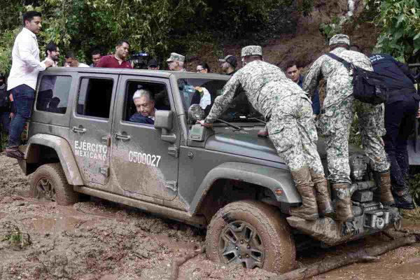 El presidente Andrés Manuel López Obrador tardó horas en llegar a Acapulco, Guerrero, pese al estado de emergencia que se vive en la zona tras el paso del huracán Otis. Su misión era reunirse con la gobernadora de la entidad para saber cuáles habían sido las afectaciones; sin embargo decidió tomar la carretera México-Acapulco y su camioneta quedó atascada en lodo.