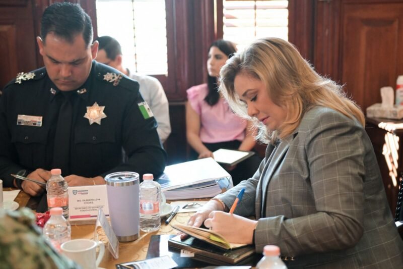 Chihuahua, Chih.- La gobernadora Maru Campos encabezó esta mañana la sesión de la Mesa de Coordinación para la Construcción de la Paz, donde en conjunto con representantes de los tres niveles de Gobierno, analizó la situación que guarda el estado en materia de seguridad.