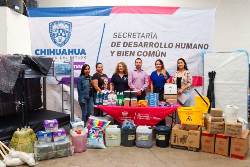 Chihuahua, Chih.- Como parte de las acciones para fortalecer los albergues de personas jornaleras agrícolas que trabajan en varios puntos de la entidad, la Secretaría de Desarrollo Humano y Bien Común (SDHyBC) entregó equipamiento diverso en el municipio de Saucillo.