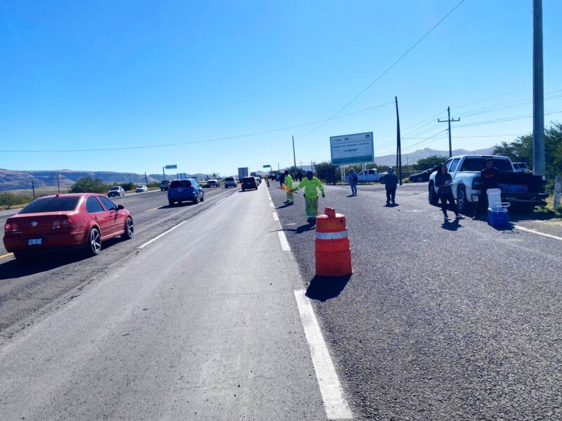 Asimismo, se lleva a cabo conservación rutinaria desde el km 137 al 209, correspondiente a la jurisdicción federal en la Puerta Chihuahua, con labores de limpieza, bacheo y deshierbe.