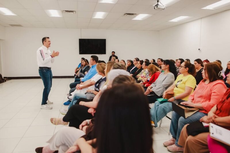 El candidato a alcalde por la coalición «Juntos Defendamos a Chihuahua», Marco Bonilla, llevo su propuesta de campaña a las titulares de las «Casas de Cuidado Diario» que desde hace 30 años apoyan a las madres trabajadoras de Chihuahua Capital con el cuidado de sus hijas e hijos.
