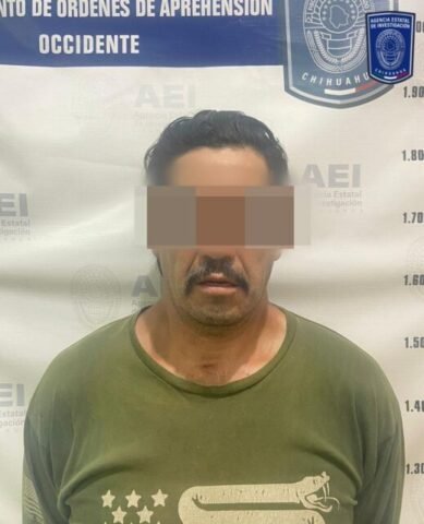 Cuauhtémoc, Chih.- Elementos de la Agencia Estatal de Investigación, adscritos a la Fiscalía de Distrito Zona Occidente, detuvieron mediante orden de aprehensión a Edgar Eduardo S. M., alias “El Tico”, quien era buscado como presunto responsable del delito de homicidio.