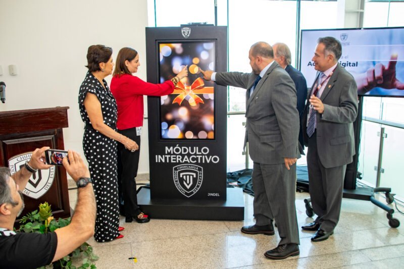 Chihuahua, Chih.- La Magistrada Myriam Victoria Hernández Acosta, Presidente del Poder Judicial del estado encabezó el corte del listón digital de las pantallas inteligentes que brindarán información y servicios a las personas usuarias en las instalaciones del Poder Judicial. En esta etapa de la estrategia “Justicia Integral Digital en Línea (JINDEL)» corresponde a la instalación de 11 pantallas inteligentes conocidos como “tótems digitales”, los cuales serán distribuidos de la siguiente manera: cuatro en las instalaciones de Ciudad Juárez, cuatro en la Ciudad Judicial de la ciudad Chihuahua, uno en Parral y uno en Delicias. La restante permanece en la Dirección de Tecnologías de la Información para realizar pruebas de diseño y programación.