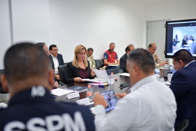 Chihuahua, Chih.- En seguimiento a su compromiso de velar por la seguridad de las y los chihuahuenses, la gobernadora Maru Campos encabezó la mañana de este lunes en Ciudad Juárez la sesión de la Mesa Estatal de Seguridad, para dar continuidad a las estrategias implementadas en la materia durante los últimos días.