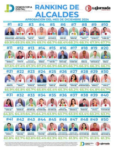 De acuerdo con la encuestadora Demoscopia Digital, evaluada en diciembre de 2024, el alcalde de Chihuahua, Marco Antonio Bonilla Mendoza, no aparece entre los primeros 50 presidentes municipales en México mejor evaluados.