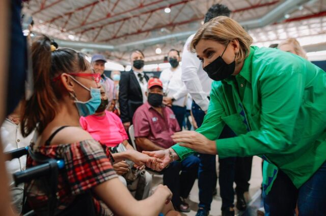 La titular del Ejecutivo tuvo la oportunidad de estar cara a cara frente a la ciudadanía camarguense y de zonas aledañas para apoyar a personas vulneradas y así poder mejorar su calidad de vida; además, a través del DIF Estatal, realizó la entrega de sillas de ruedas y aparatos auditivos a personas con discapacidad del municipio de Camargo.