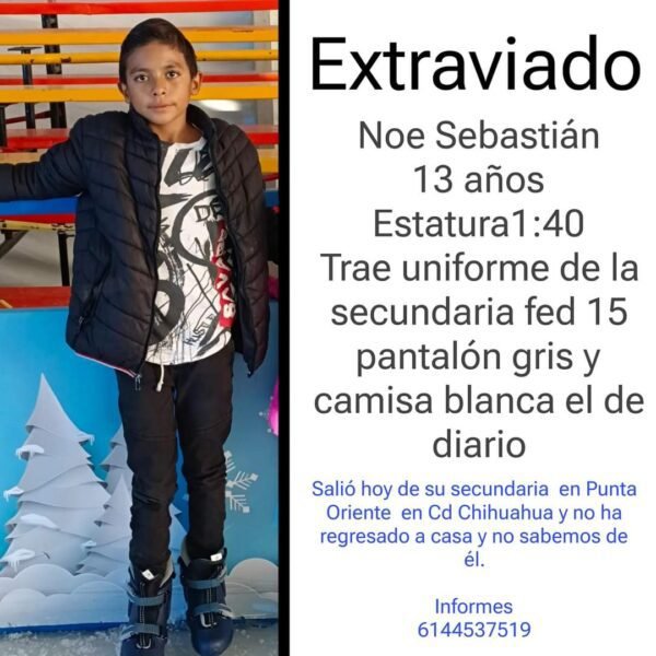 Quienes tengan información del menor, favor de llamar al teléfono 6144537519.