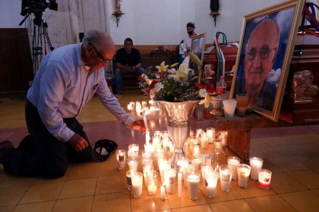 jesuitas Joaquín César Mora Salazar y Javier Campos Morales, en la comunidad de Cerocahui, Urique, en Chihuahua. Foto Cuartoscuro / Archivo" data-src="{"default":{"load":"default","w":"80","h":"53","src":"//img-s-msn-com.akamaized.net/tenant/amp/entityid/AAZkavh.img?h=533&w=799&m=6&q=60&o=f&l=f"},"size3column":{"load":"default","w":"62","h":"42","src":"//img-s-msn-com.akamaized.net/tenant/amp/entityid/AAZkavh.img?h=416&w=624&m=6&q=60&o=f&l=f"},"size2column":{"load":"default","w":"62","h":"42","src":"//img-s-msn-com.akamaized.net/tenant/amp/entityid/AAZkavh.img?h=416&w=624&m=6&q=60&o=f&l=f"}}" />© Proporcionado por La Jornada Misa de cuerpo presente de los sacerdotes jesuitas Joaquín César Mora Salazar y Javier Campos Morales, en la comunidad de Cerocahui, Urique, en Chihuahua. Foto Cuartoscuro / Archivo