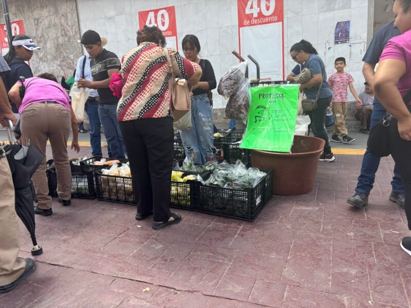 La Calle Libertad y Tercera se convirtió en un mercado improvisado, luego de que integrantes de la Unión Campesina Democrática instalaron un punto de venta directa de productos del campo como parte de una protesta contra los abusos que enfrentan los productores chihuahuenses.