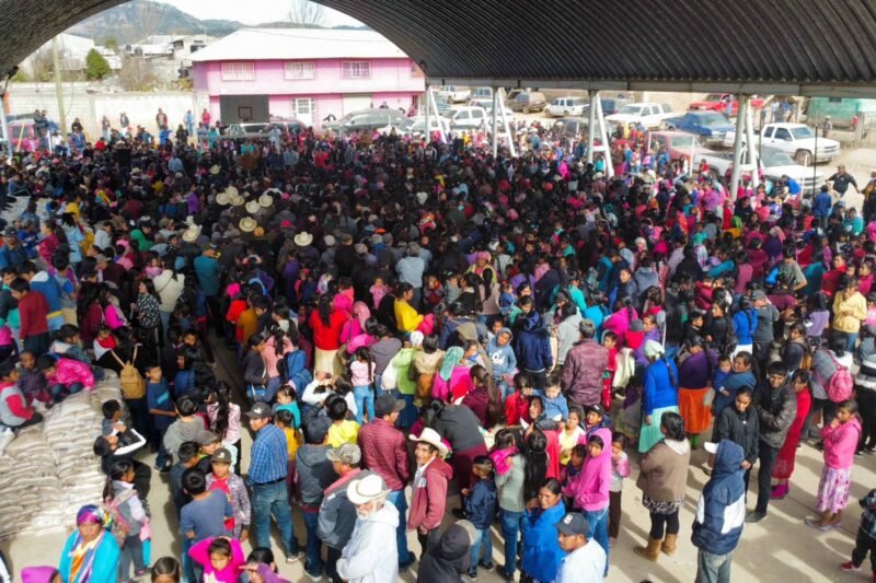 Un total de 3 mil familias, fueron beneficiadas con la entrega de paquetes alimenticios de grano básico, para asegurar su alimentación durante esta temporada invernal, asimismo, se otorgaron obsequios y dulces dirigidos a la población infantil.