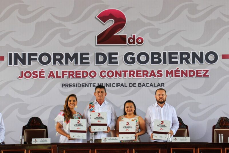 Acompañado por su familia y contando con la presencia de la gobernadora Mara Lezama Espinosa como invitada de honor, el presidente municipal de Bacalar, José Alfredo “Chepe” Contreras Méndez expuso las acciones, obras, programas y resultados alcanzados en su segundo año de gobierno por la transformación del Bacalar digno que merecen.