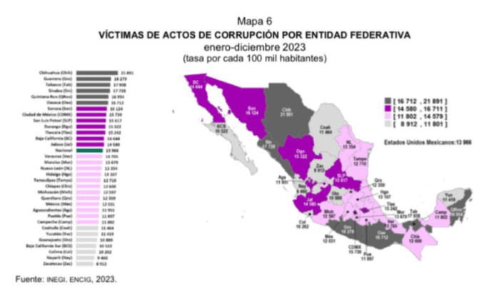 El listado fue realizado por la organismo autónomo Instituto Nacional de Estadística y Geografía (INEGI), mediante la implementación de la Encuesta Nacional de Calidad e Impacto Gubernamental 2023 del Instituto, que indican que los incidente relacionados con actos de corrupción se han duplicado en presente administración estatal, el incremento de cera de un 100%, impulso a la entidad a colocarse en la cabeza del listado, ocupando el primer lugar.