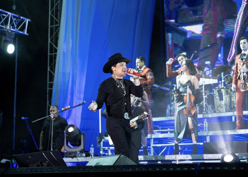 Con su característico estilo, vestido de negro y acompañado por músicos en vivo, Christian Nodal interpretó éxitos que han marcado su carrera, como “Botella tras botella”, “Dime cómo quieres”, “Ya no somos ni seremos” y el emblemático “Adiós amor”.