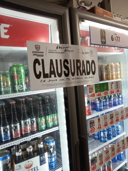 • Tienda de abarrotes “Modelorama Suc. 82” por violación de giro (Ciudad Juárez).