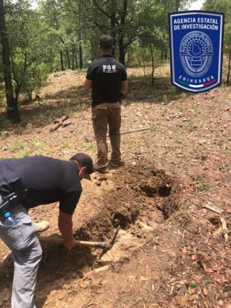 Una vez que fue ubicado el lugar en donde fue inhumado clandestinamente el joven Berrelleza, las autoridades que componen el Operativo Conjunto para el restablecimiento de la paz en Urique, realizaron un rastreo que permitió localizar los tres cadáveres.