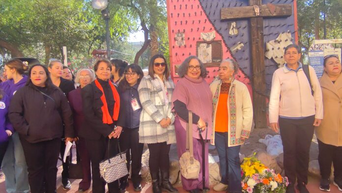 Activistas del Centro Estatal de Derechos Humanos de las Mujeres llevaron a cabo un acto simbólico en la Cruz de Clavos para conmemorar el 25 de noviembre, fecha reconocida internacionalmente para denunciar la violencia contra las mujeres. La ceremonia se realizó en el Centro Histórico de la capital.