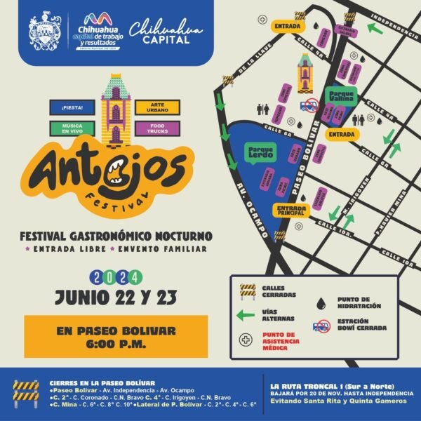Cabe señalar que el festival contará con vigilancia permanente por parte de la Policía Municipal y con apoyo vial por parte de Gobierno del Estado, para prevenir y atender cualquier situación. El Gobierno Municipal invita a ser parte de este gran festival culinario que busca hacer de Chihuahua Capital un destino turístico reconocido a nivel nacional e internacional.
