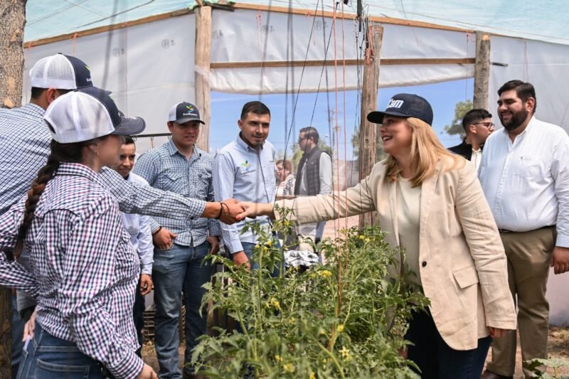 Camargo, Chih.- En el marco de la gira de trabajo que efectúa por la región sur de la entidad, la Gobernadora del Estado interactuó con los estudiantes de la Universidad Tecnológica de Camargo (UTCam) Unidad Jiménez, durante el desarrollo de la Feria de proyectos finales, de la carrera de Agricultura sustentable.