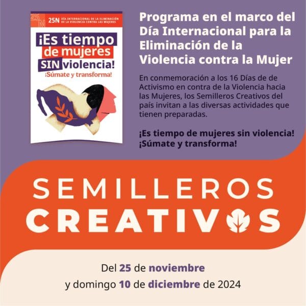 A través de diversas estrategias Semilleros Creativos -grupos de formación artística gratuita con enfoque comunitario- promueven el derecho a una vida libre de violencias en donde la participación de niñas y niños, jóvenes, mujeres y hombres, es de suma importancia para lograr la concientización de este problema.