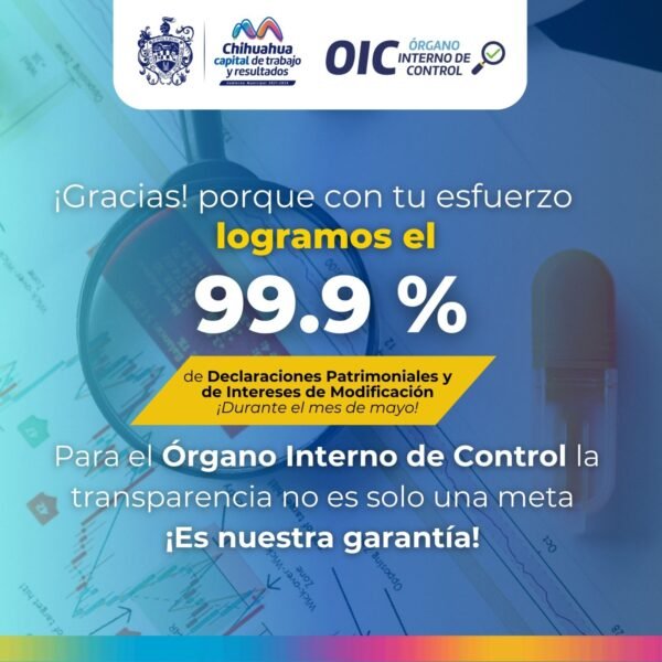 El Gobierno Municipal, a través del Órgano Interno de Control (OIC), informa que este año se alcanzó un cumplimiento del 99.9 por ciento en la presentación de la modificación 2024 de las declaraciones patrimoniales y de intereses de las personas servidoras públicas que laboran en las diferentes dependencias municipales.