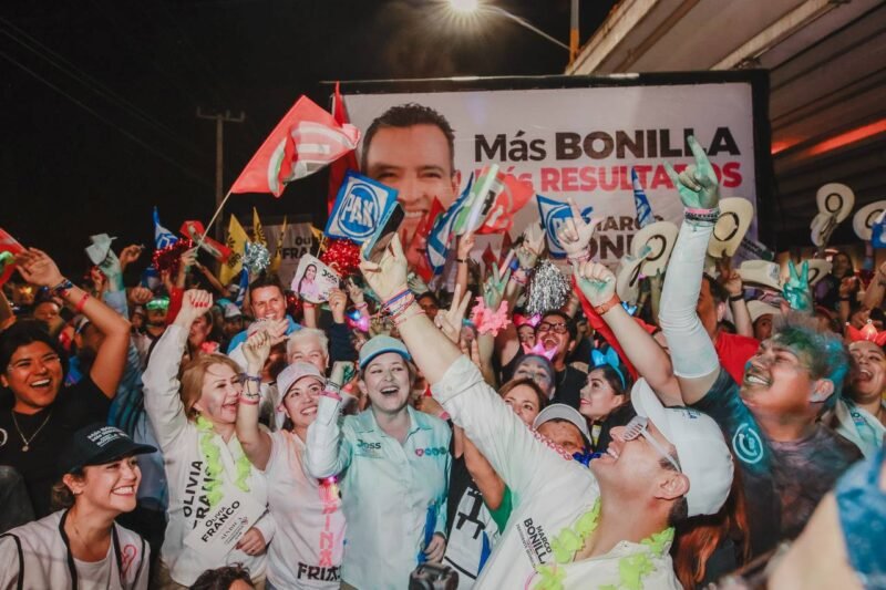 Entre luces, humo y banderas ondeando el color azul, rojo y amarillo, fue como se pintó el cruce de las avenidas Juan Escutia y Tecnológico para promocionar a Marco Bonilla y los candidatos de las coaliciones de Chihuahua «Fuerza y Corazón por México» y «Juntos Defendamos a Chihuahua».