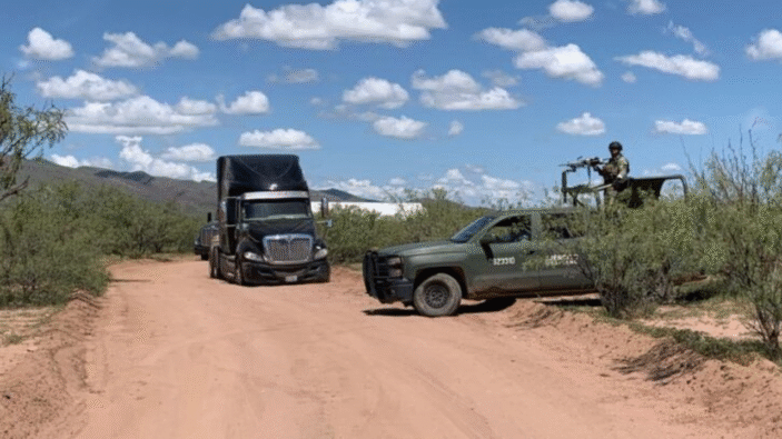 Efectivos del Ejército Mexicano aseguraron dos pipas con combustible en un camino de terracería cerca del ejido El Mimbre, en la carretera Aldama–Chihuahua.