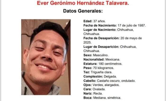 La Fiscalía General del Estado emitió este jueves 22 de mayo una ficha de búsqueda por la desaparición de Ever Gerónimo Hernández Talavera, de 37 años, quien se desempeña como enlace administrativo de Comunicación Social en la Secretaría de Seguridad Pública del Estado (SSPE). La última vez que se tuvo conocimiento de su paradero fue durante la noche del martes 20.