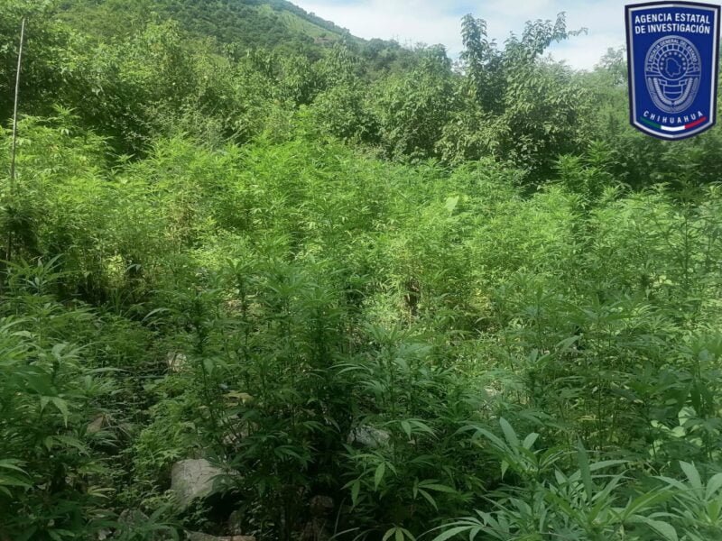 Chihuahua, Chih.- Durante labores de investigación para combatir diversos delitos en el lugar denominado Arrollo Chiquito, sección de Dolores, municipio de Guadalupe Y Calvo, se localizó y destruyó un plantío de mariguana.