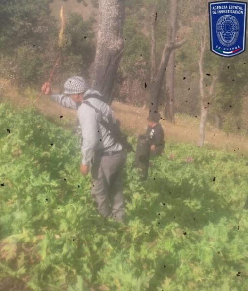 Chihuahua, Chih.- Como parte del combate frontal de los delitos, elementos de la Agencia Estatal de Investigación (AEI) adscritos a la Fiscalía de Distrito Zona Sur, destruyeron un plantío de amapola en el municipio de Guadalupe y Calvo.