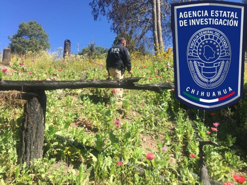 Chihuahua, Chih.- La Fiscalía General del Estado a través de elementos de la Agencia Estatal de Investigación (AEI) con destacamento en la localidad de Baborigame, del municipio de Guadalupe y Calvo, localizaron y destruyeron un plantío de amapola.