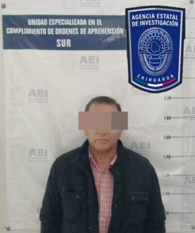 Parral, Chih.- Elementos de la Agencia Estatal de Investigación (AEI) detuvieron en la ciudad de Parral a Manuel P. V., persona de 59 años de edad que contaba con una orden de aprehensión en la que aparece como probable responsable del delito de fraude.