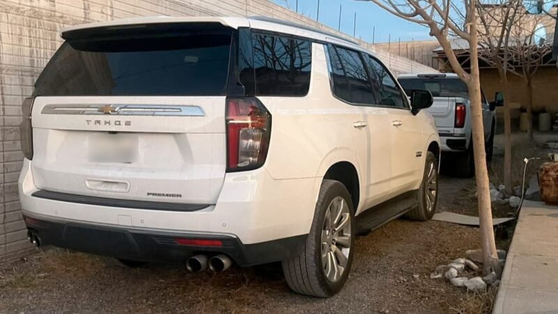 En dicho lugar, los Policías Investigadores realizaron una revisión a una pick up marca GMC, línea Sierra, modelo 2021, de color blanco, así como a una camioneta marca Chevrolet, línea Tahoe, de color blanco, las cuales contaban con reporte de robo interpuesto en el presente mes, en el estado de Texas.