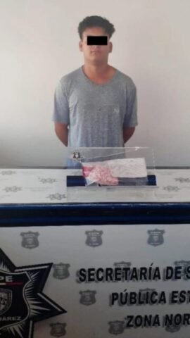 CHIHUAHUA, CHIHUAHUA.- Elementos del Grupo K-9 de la Secretaría de Seguridad Pública del Estado (SSPE) detuvieron en Ciudad Juárez a un sujeto con casi 300 dosis de la droga conocida como cocaína empaquetadas para su venta individual.