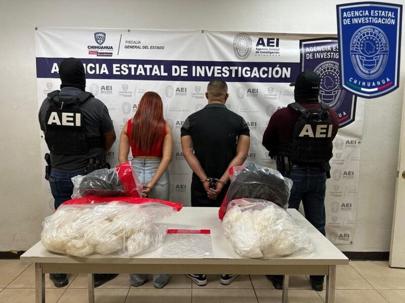 Ciudad Juárez, Chih.- Elementos de la Unidad de Combate al Narcomenudeo de la Agencia Estatal de Investigación en la Zona Norte, capturaron en términos de flagrancia, a una pareja, en posesión de una gran cantidad de cocaína y cristal.