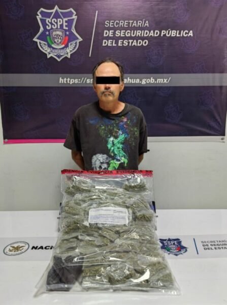 Elementos de la Secretaría de Seguridad Pública del Estado (SSPE) Zona Norte detuvieron a un sujeto en posesión de 165 envoltorios de una hierba verde, seca y olorosa con las características de la marihuana.