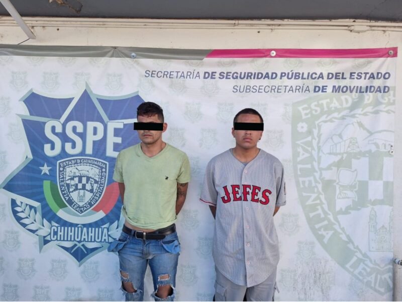 Dos hombres a bordo de una camioneta con reporte de robo, fueron detenidos en la carretera que conduce de Chihuahua a Delicias, por elementos de la Subsecretaría de Movilidad, de la Secretaría de Seguridad Pública (SSPE).