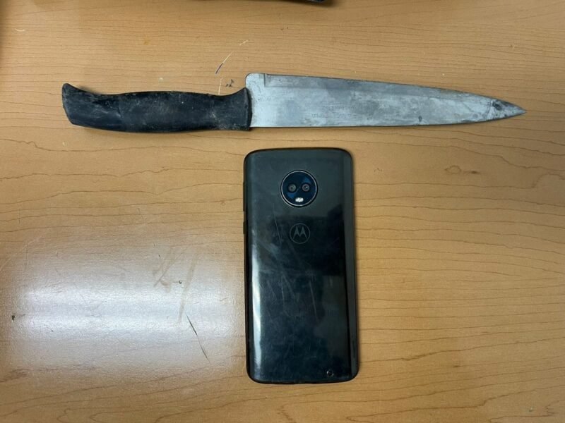 En las calles Pedro Moreno y Gómez Morín, de la colonia Centro, los oficiales de la SSPE ubicaron a un sujeto que coincidía con las características de la denuncia y, al marcarle el alto y realizarle una inspección se le localizó un arma punzocortante y un teléfono celular, propiedad de su víctima.