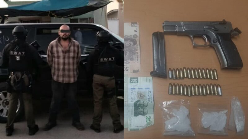 CHIHUAHUA, CHIHUAHUA.- Con un arma corta fajada a la cintura y 39 gramos de cristal fue detenido un hombre en la colonia Quinta Arboleda mientras conducía una camioneta sin placas de circulación.