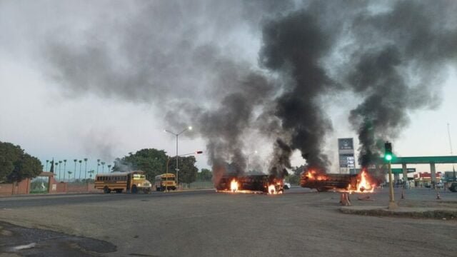 Se encuentran bloqueos también en la carretera Mexico 15 donde hay vehículos incendiados; así como en la salida Norte y sur de la ciudad.