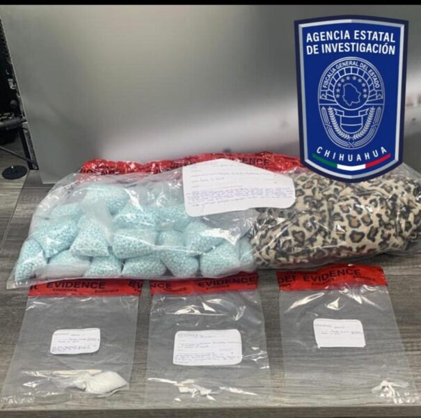Chihuahua, Chih.- En apego al combate a los delitos contra la salud, elementos de la Agencia Estatal de Investigación, en operativo conjunto con la Secretaría de Marina, detuvieron en Chihuahua a dos hombres y una mujer que transportaban 34 mil pastillas de fentanilo y otras drogas.