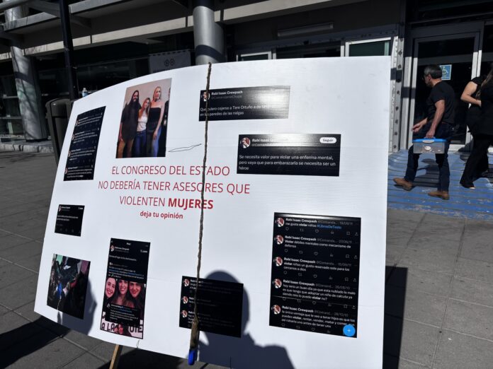 Un cartel con comentarios en redes sociales por parte de Adrián Sánchez conocido como “Chupa” fue puesto en la entrada de Congreso del Estado, donde difaman al asesor como misóginos por sus publicaciones.