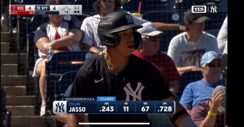 El parralense Dylan Jasso volvió a tomar acción con los Yankees de Nueva York en el Spring Training en el juego donde enfrentaron a los Boston Red Sox.