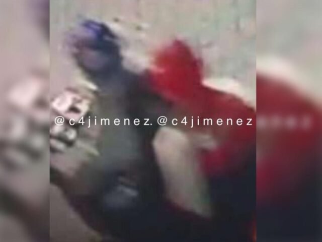 Aunque la imagen es un poco borrosa, se puede ver al sujeto con una chamarra blanca con rojo, tal como narró el periodista en su programa de esta mañana en radio.