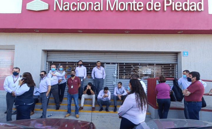 Chihuahua, Chih.- Después de que los empleados del Nacional Monte de Piedad, en Chihuahua se sumaron al paro nacional de la tricentenaria institución, los inconformes exigen mejoras en las condiciones laborales y salariales, mismas que estuvieron a punto de solucionarse por medio de negociaciones, sin embargo, la plantilla laboral informó está mañana que los diálogos se habían interrumpido y habían regresado a la toma de las instalaciones de la Institución de Asistencia Privada.